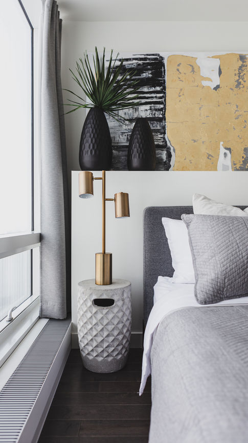 FLIS Interior Design's client lives in Vancouver, but wanted to have an upscale look condo that he can rent out. It’s a darker palette meant to immolate the sexy lifestyle of a downtown executive male living in an upscale space with views for days.